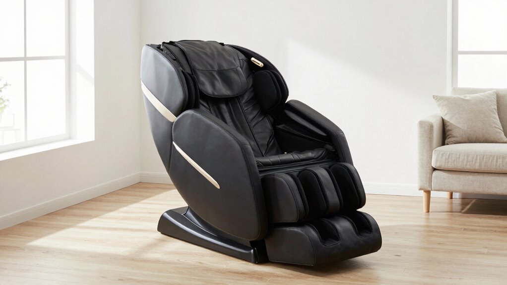 A stitch in time saves nine, so it’s wise to contemplate outdoor durability. Massage chairs aren’t designed for humid or outdoor environments, as humidity effects can damage internal electronics and materials. If you try to use one outside, you risk corrosion, mold, and malfunction. For longevity, keep your chair indoors where it’s dry, cool, and protected from weather. This way, your investment stays safe and functional longer.