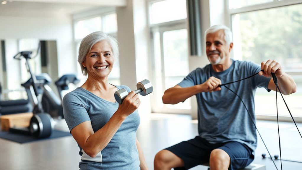 Imagine trying to juggle flaming torches blindfolded—that’s how risky it can seem to start strength training with health issues. But don’t worry! You should get medical clearance first, then work with a trainer to create personalized programs tailored to your needs. With proper guidance, seniors with health conditions can safely strengthen muscles, boost confidence, and improve overall health—no circus acts required.