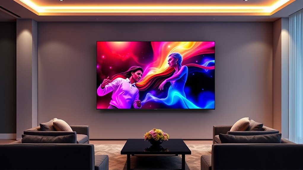 Since sound quality can make or break my viewing experience, I pay close attention to features like Dolby Atmos and DTS:X, which deliver immersive, multi-dimensional audio that fills the room. Built-in speakers with advanced sound engineering can produce clear dialogue and rich audio without needing external systems, which is a huge plus. Audio enhancement technologies like AI-optimized sound and dialogue modes further improve clarity and balance, making everything from conversations to action scenes more enjoyable. Supporting external audio devices and soundbars allows me to customize my sound setup for even better quality. However, I also consider speaker placement and the TV’s acoustic design—slim profiles might sacrifice some audio richness, so I look for a balance between sleek design and sound performance.