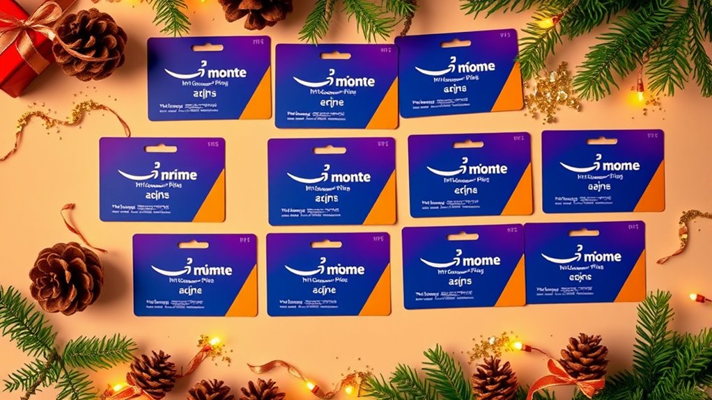 The price of a 3-month Amazon Prime gift subscription generally hovers around $39.99, though it can vary with promotions or regional differences. Setting a budget helps you decide whether to go for a standard or premium gift option that fits your financial plan. It’s also smart to compare this cost to other gift options to guarantee you’re getting good value. Don’t forget to take into account additional expenses like taxes or fees, which can impact your total budget. During sales or special deals, the price might drop, making the gift more affordable without compromising quality. Being mindful of these factors helps you choose a gift subscription that aligns with your budget while still offering great value and a thoughtful present.
