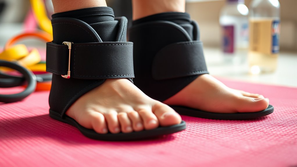 Secure closure mechanisms are essential for keeping ankle weights firmly in place during your workouts. Whether it’s Velcro straps, buckles, or hook-and-loop fasteners, a reliable closure prevents slipping and shifting, which can disrupt your form or cause injury. The strength and durability of the closure are vital, ensuring the weights stay secure through vigorous movement over time. Adjustable closures also let you customize the fit, reducing chafing and discomfort while accommodating different ankle sizes. Plus, easy-to-use mechanisms make it simple to put on and take off the weights quickly, saving you time and effort. Overall, a secure closure system boosts confidence, safety, and effectiveness during your exercise routine.