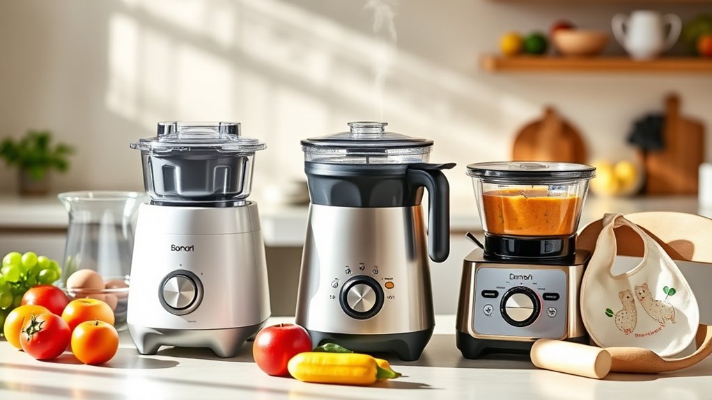 When I set out to make homemade baby food, I found 13 amazing baby food makers and blenders that truly simplify meal prep. From the NutriBullet Baby Complete Food-Making System to the GROWNSY Baby Food Maker, these devices offer various functions like steaming and blending. They’re all designed with safety and ease of use in mind. If you’re curious about which ones might be the best fit for you, keep exploring the options I’ve highlighted.