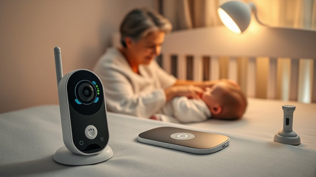 If you’re looking for the best baby monitors for elderly care, I’ve found top options that emphasize safety, privacy, and ease of use. These devices feature high-quality video, two-way communication, long-range coverage, and security features like encryption and no WiFi dependency. They also include helpful alerts, night vision, and long-lasting batteries, ensuring peace of mind. Keep exploring further, and you’ll discover more about choosing the right monitor for your loved one’s safety.