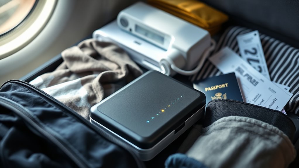 Most battery backups I’ve researched include built-in safety features like overcharge protection, which stops charging once the battery is full, and thermal regulation systems that prevent overheating. These features automatically activate if the device detects abnormal temperature increases or voltage levels, ensuring safe operation during travel. I always check for these safety measures before choosing a battery backup, so I can rest assured my CPAP remains safe and reliable.