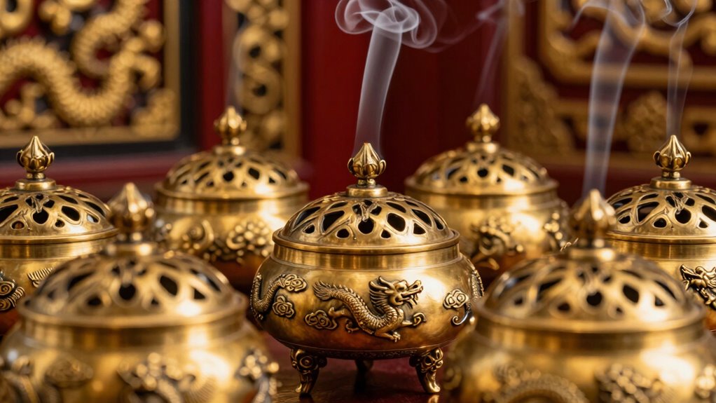 If you’re looking for the 15 best brass incense burners for an oriental interior in 2026, I’ve got you covered. These pieces combine rich traditional motifs, intricate designs, and high-quality brass finishes that instantly elevate your decor. From dragon and phoenix symbols to gourds and floral patterns, each burner adds both spiritual and aesthetic appeal. Keep going to discover detailed features, style tips, and how to select the perfect piece to match your space.