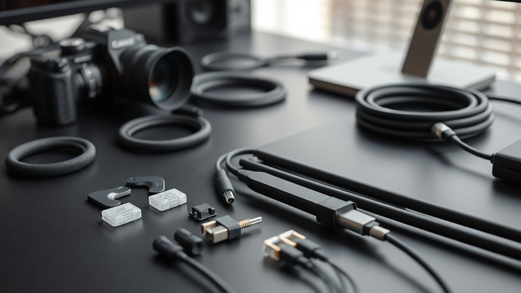 I find cable management kits are quite flexible—they can be reused and repositioned with ease. I often rearrange my setup, sliding cables into new clips or rerouting cords without hassle. These kits are designed for versatility, making it simple to adapt to changes or upgrades. So, whether you’re reorganizing for a fresh feel or fixing a cluttered corner, you’ll find these kits are just as adaptable as your evolving space.