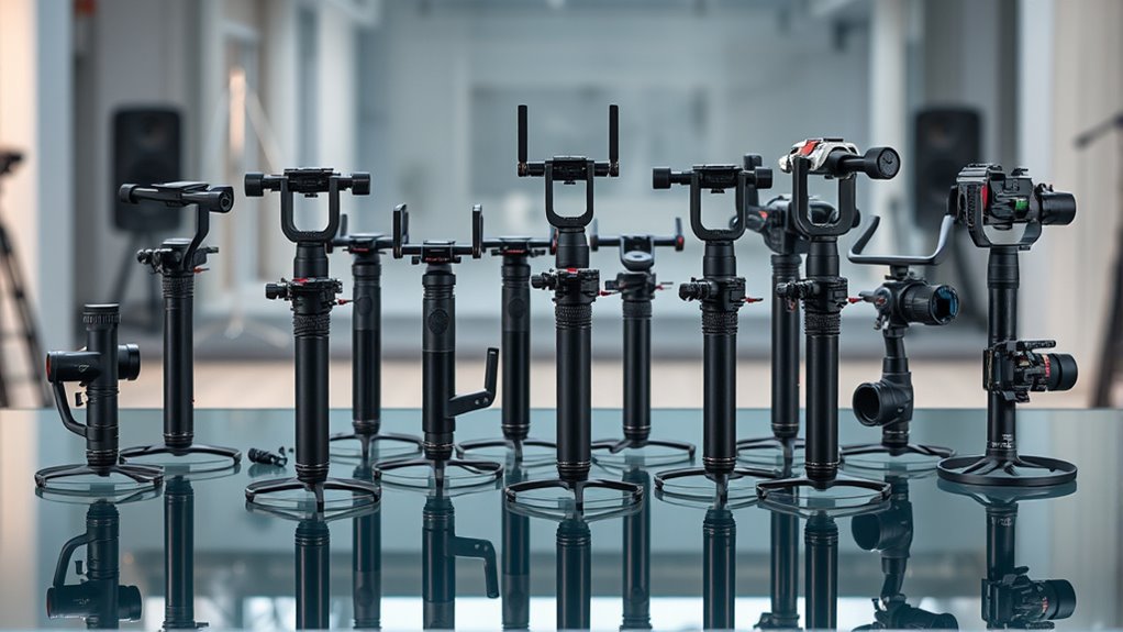 If you’re looking for the best camera stabilizers of 2026, I’ve got you covered. There are a variety of options, from lightweight gimbals like DJI RS 3 Mini and DJI Osmo Mobile 7P for smartphones to powerful body-mounted stabilizers for professional cameras. Many models now include AI tracking, quick setup, and versatile mounting options for smooth, steady footage in any scenario. Keep exploring to find out which stabilizer suits your needs best.