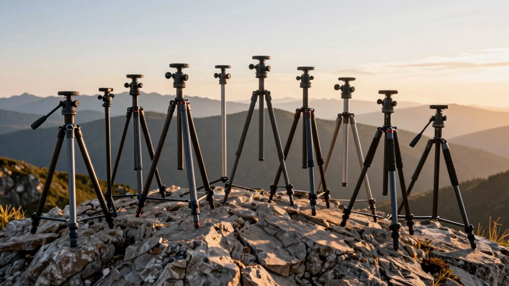 Different tripod materials greatly influence weight and durability. Aluminum tripods are sturdy and durable but heavier, making them perfect for stability but less ideal for travel. Carbon fiber tripods are lightweight yet strong, offering a great balance for travel photographers. I prefer carbon fiber because it’s easier to carry without sacrificing stability. Ultimately, choosing the right material depends on your need for portability versus ruggedness.