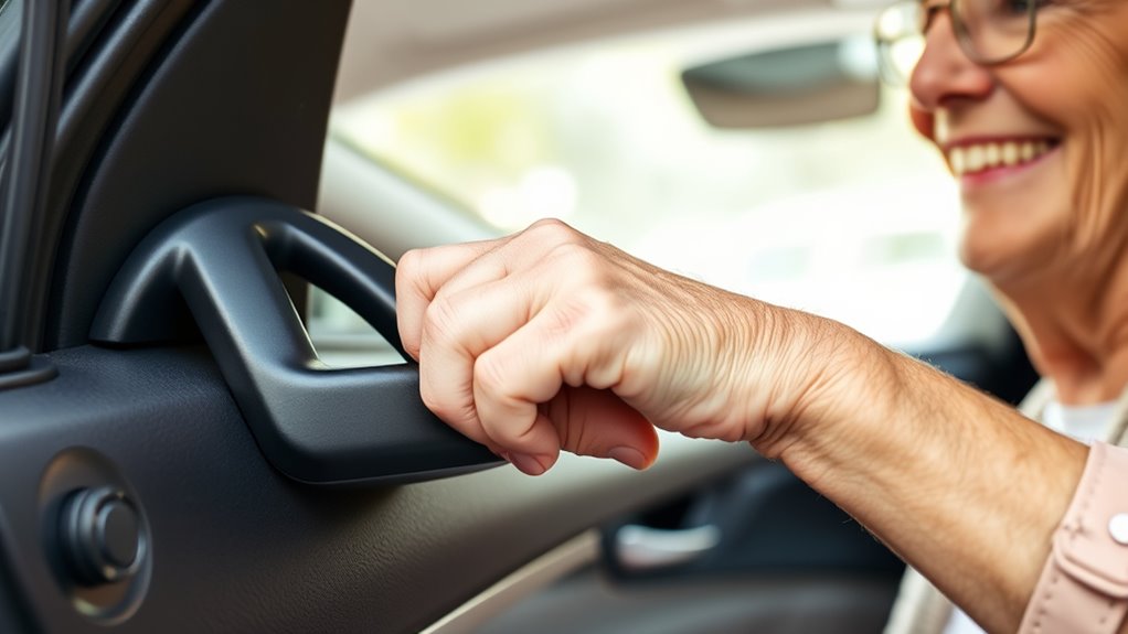 The durability of car assist handles depends heavily on the materials they’re made from, as high-quality options can withstand daily use and environmental factors. Handles crafted from forged steel, aluminum alloy, or reinforced composite plastics are ideal because they resist rust, corrosion, and wear, ensuring longevity. These sturdy materials can support weights of 400 pounds or more without bending or breaking, providing reliable safety. Additionally, ergonomic grips made from durable, non-slip silicone or foam prevent wear and offer a secure hold. Choosing handles built with durable materials not only guarantees safety but also enhances reliability and lifespan. For seniors relying on these supports daily, investing in high-quality, long-lasting materials makes a significant difference in performance and peace of mind.