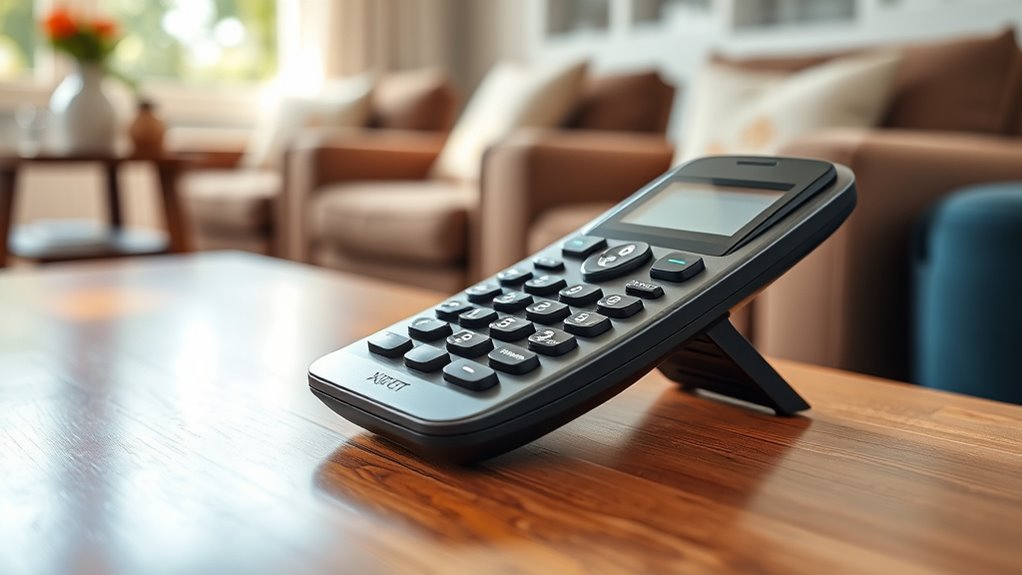 Choosing a cordless phone that’s easy for seniors to use involves focusing on simple, clear design features. Large, clearly labeled buttons make dialing and orienteering straightforward, reducing frustration. A user-friendly interface with minimal menus helps seniors operate the phone without confusion. Bright visual indicators like flashing lights or illuminated screens improve call alerts and status recognition, especially for those with hearing or vision challenges. Adjustable volume controls for both the ringer and handset allow users to customize sound levels to their hearing needs. Additional features like one-touch speed dial, photo dial buttons, and emergency buttons further enhance accessibility and quick response. These design elements work together to guarantee seniors can use their phones comfortably and confidently, promoting independence and peace of mind.
