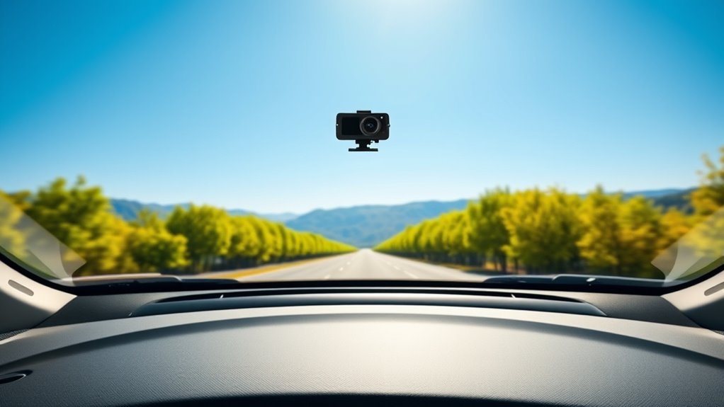 Parking mode turns your dash cam into a vigilant guardian even when you’re away from the wheel. It automatically starts recording if it detects movement, impacts, or vandalism, providing essential evidence when you’re not around. Many models include features like time-lapse recording, motion detection, and impact detection with lock-in to highlight relevant footage and save storage. Activation often requires a hardwire kit or connection to your vehicle’s power system, especially for continuous monitoring. Some dash cams let you adjust sensitivity settings for G-sensors and motion detection, giving you control over what triggers recordings. The effectiveness of parking mode depends on the power source—built-in batteries or supercapacitors ensure longer durability and reliability, so your dash cam stays alert even during extended parking periods.