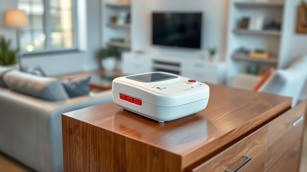 When selecting a home defibrillator, it’s important to contemplate how well it can guide users through an emergency. A good device provides clear, step-by-step voice and visual prompts, helping even untrained users respond confidently. Features like real-time CPR instructions and prompts for shock delivery can substantially reduce response times and boost survival chances. Automated analysis technology is essential; it assesses heart rhythms accurately and determines if a shock is needed, preventing unnecessary interventions. User-friendly interfaces and intuitive instructions ensure that non-medical personnel can operate the device under stress. Additionally, training and simulation modes, like AED trainers, can enhance preparedness by allowing safe practice without risking patient safety. These guidance features are critical for effective, confident emergency responses at home.