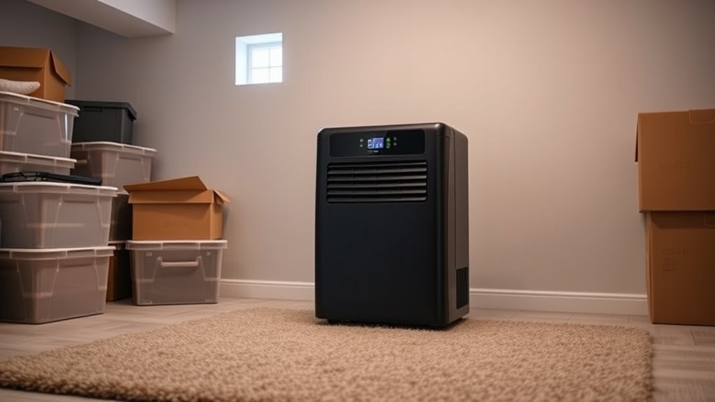 Looking for the best dehumidifiers to keep your basement dry and comfortable? I’ve found options ranging from small, portable units with 95 oz. tanks for quick moisture control up to large-capacity models with 150 pints per day and continuous drainage. Many include smart features like humidity display, auto shut-off, and child locks to make maintenance easy. If you’re curious about which models suit your space, there’s plenty more to explore.