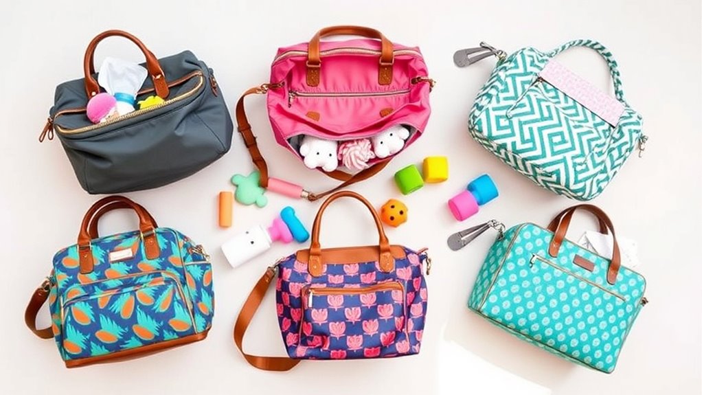 In 2025, I’ve found some amazing diaper bags that perfectly blend stylish designs with functional features for new parents. For instance, the RUVALINO Diaper Bag Backpack offers a generous capacity with a changing pad, while the BabbleRoo provides multiple carrying options with water-resistant material. The Skip Hop is excellent for traveling, and the PILLANI is great for waterproof needs. If you want to discover more options and insights, keep going to explore the best choices!