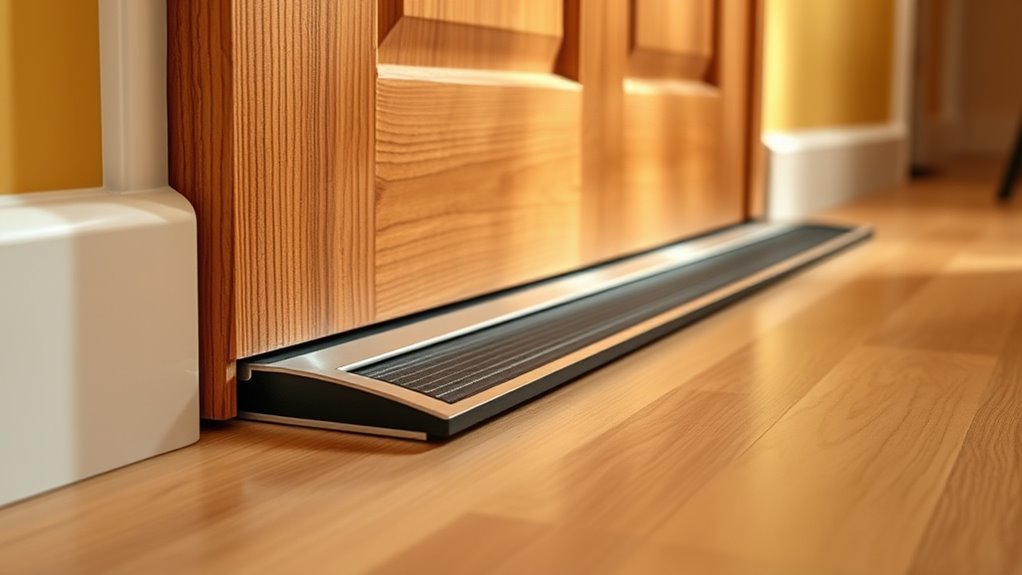 Did you know that drafts from doors can account for up to 15% of energy loss in homes? Choosing the right door sweep can markedly cut your heating and cooling costs, making your home more comfortable and energy-efficient. Whether you opt for a simple brush seal or an adjustable weather strip, investing in a good door sweep is a smart move. Don’t wait—seal those gaps and enjoy a quieter, cozier, and more budget-friendly home today.