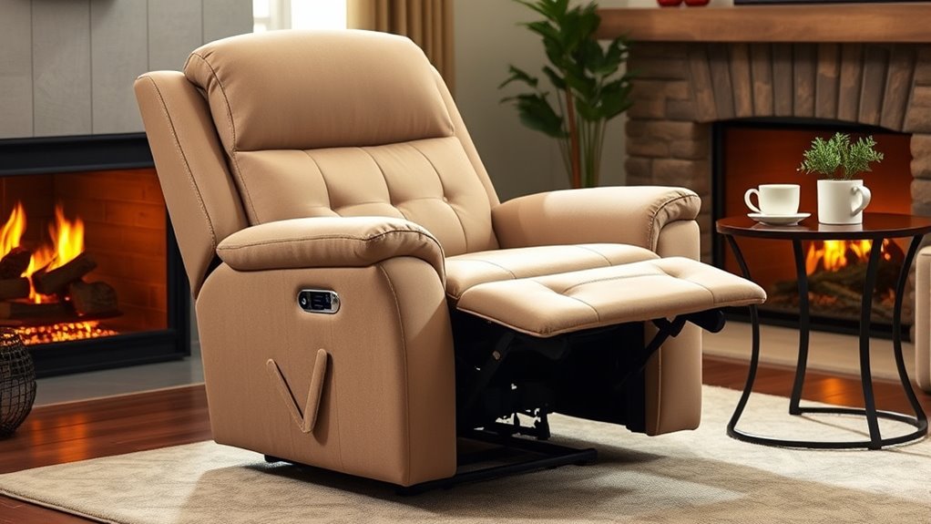Looking for safety features in a lift chair? Well, don’t forget to check for sturdy, non-slip footrests and secure locking mechanisms—because falling isn’t exactly on my list of hobbies. I also look for easy-to-reach emergency handles and smooth, controlled recline functions. These little details keep me confident that I won’t turn my living room into a slapstick comedy scene. Safety first, folks—because falling isn’t funny anymore.