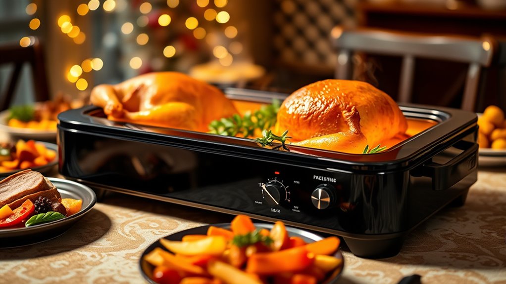 • Safety features like overheat protection and auto shut-off maintain food safety during extended holiday gatherings.