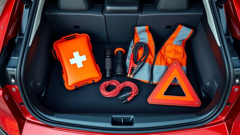 When you pack one of these emergency kits, you’re filling your car with a safety net—like a quiet guardian watching over your journey. Picture the glow of a roadside flare at dusk or the hum of a portable air compressor, ready to restore your peace of mind. With the right kit, you’re not just prepared; you’re confidently steering every twist and turn, knowing that help is just a tool away in any moment of need.
