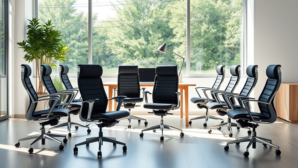 Looking for the best ergonomic office chairs in 2025? I’ve found top picks that offer adjustable features like lumbar support, headrests, armrests, and recline angles to suit your comfort needs. These chairs combine breathable mesh, durable materials, and space-saving designs, supporting up to 440 lbs. They’re perfect for long hours at work or gaming. Keep going if you want detailed insights on how these chairs can transform your workspace and health.