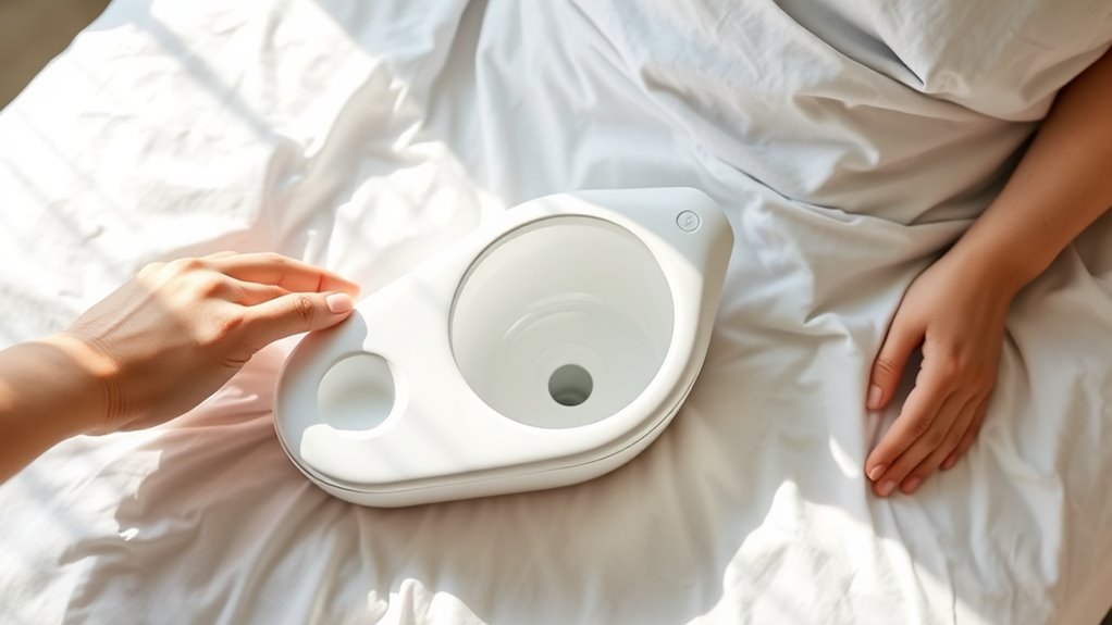 Maintaining a patient’s dignity and privacy is essential when using female urinals for bedridden individuals. Ensuring privacy helps preserve their emotional well-being and fosters trust. Devices with discreet designs and coverings can shield patients from public view, making the experience less embarrassing. Features like spill-proof lids and opaque materials prevent bodily fluids from being exposed, supporting dignity. Providing a private, comfortable environment encourages cooperation and reduces discomfort. Proper handling and discreet storage of the urinals also play a key role in respecting privacy. When selecting a female urinal, look for designs that prioritize discretion and ease of use, ensuring patients feel secure and respected during use. Protecting privacy isn’t just about comfort; it’s crucial for preserving their sense of dignity.