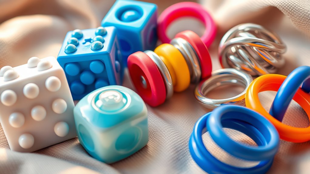 Finding the right fidget toy is like discovering a tiny lighthouse in a storm—they provide calm amid chaos. I’ve seen how a simple sensory toy can transform a restless moment into a peaceful one, just like that. When choosing, think of it as guiding a loved one safely through foggy waters, helping them find clarity and comfort. With the right tools, we can bring serenity and focus where it’s needed most.