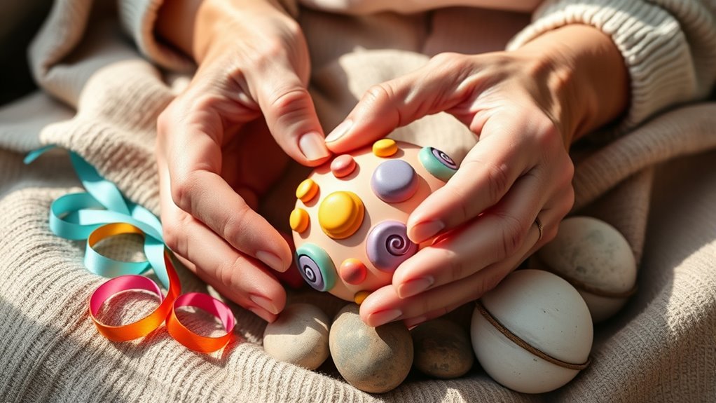 I know how important it is to find calming fidget toys for seniors with dementia. The best options I recommend include sensory blankets, rings, aprons, and therapy boards that offer various textures and activities. These toys help reduce anxiety, improve motor skills, and promote relaxation. They’re made from durable, easy-to-clean materials and are portable for easy use anywhere. Stay with me to explore the top choices and find the perfect fit for your loved one.