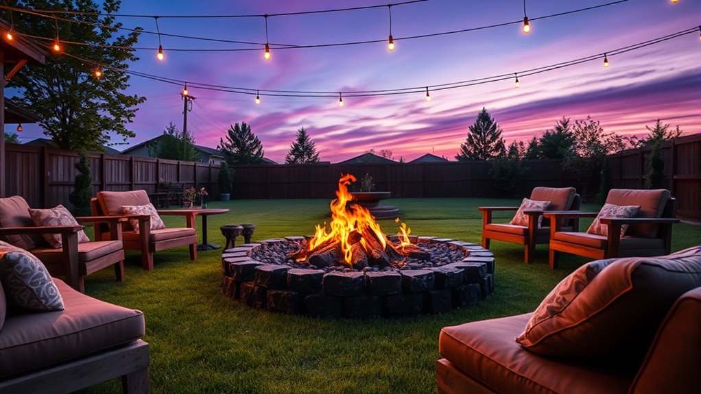 Think of your fire pit as a garden that needs caring to thrive. I regularly clean ashes and debris, check for rust or cracks, and cover it when not in use. If it’s metal, I oil the surfaces to prevent corrosion. For stone or concrete pits, I seal cracks promptly. Proper maintenance keeps my fire pit looking good and working safely, making every cozy night around the fire even better.