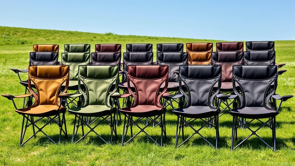 Adding storage options to a heavy-duty folding camp chair can substantially boost convenience and organization during outdoor adventures. Features like side pockets, cup holders, and cooler bags keep essentials within easy reach, so I don’t have to juggle multiple bags. Larger compartments are great for holding phones, snacks, and personal items, reducing clutter and making everything accessible. Built-in insulated cooler bags are perfect for keeping beverages cold during long outings. Padded or mesh pockets help organize small items, preventing them from getting lost. Many chairs also include waterproof or insulated compartments, offering protection from weather and spills. These added storage features enhance comfort by making sure I have everything I need close at hand, allowing me to focus on enjoying my outdoor experience.