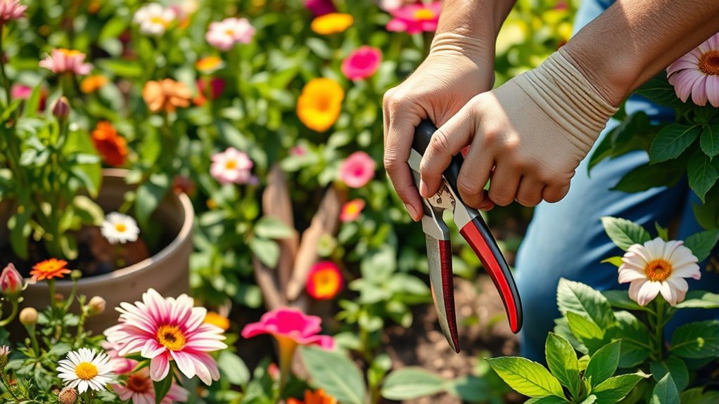 The safest gardening tools for seniors with limited mobility are lightweight, ergonomically designed tools with padded grips. I recommend long-handled tools to reduce bending and kneeling, making gardening more comfortable and safer. Look for tools with non-slip handles, sharp but easy-to-use blades, and sturdy but lightweight materials. These features help minimize strain, prevent accidents, and allow you to enjoy gardening with less pain and more confidence.