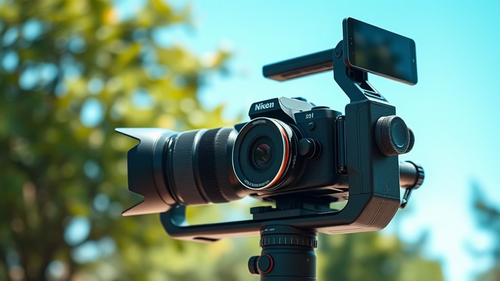 If you’re looking to capture smooth, professional footage in 2025, I recommend exploring the top gimbal stabilizers tailored for various devices. From compact smartphone models like the DJI Osmo Mobile SE and Mobile 7 to versatile options like the 2-in-1 stabilizer for action cams and smartphones, there’s something for every creator. For DSLR and mirrorless cameras, options like the FeiyuTech SCORP and DJI RS 4 Mini shine. To find the perfect fit for your needs, continue exploring the best options available today.