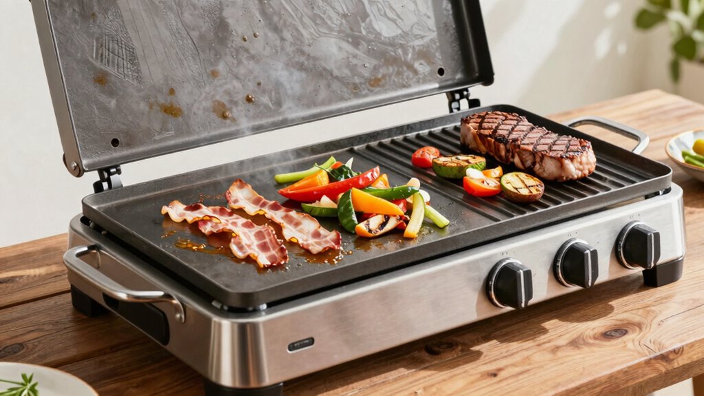 - Highlights top features like dual cooking zones, versatile surfaces, and independent controls for diverse outdoor meal prep.