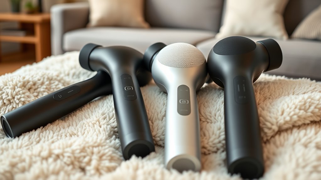 A key factor to consider when choosing a hand massager is its battery life, as it determines how long I can enjoy a relaxing session without interruptions. Most devices offer between 1 to 5 hours of cordless use per charge, depending on battery capacity and settings. Higher-capacity batteries, like 3000mAh or more, often provide over 4 hours of continuous massage, which is ideal for longer sessions. Fast-charging features are a bonus, allowing me to quickly recharge and continue using the device without long waits. Keep in mind, battery performance may decline over time, so selecting a massager with reputable battery quality ensures consistent duration and safety. Good battery life enhances convenience, making relaxation sessions more enjoyable and hassle-free.