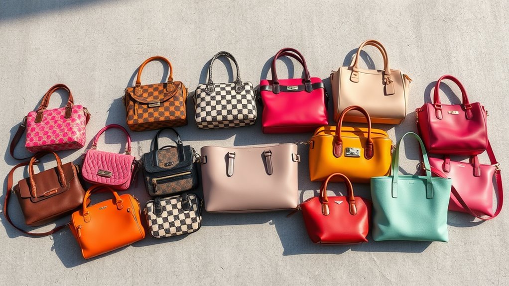 When I think about versatility in handbags under $100, I focus on styles that effortlessly shift from day to night. I love choosing bags with adjustable straps or multiple handles; it makes changing from casual outings to professional meetings a breeze. Opting for tote, crossbody, or satchel shapes offers the perfect blend for both day and evening events. I also lean towards neutral or classic colors like black, beige, or navy, as they match a variety of outfits. The handbag’s size plays a vital role too; I need it to hold daily essentials like my wallet, phone, and makeup. With these factors in mind, I guarantee my handbag adapts to any occasion while keeping me stylish and organized.