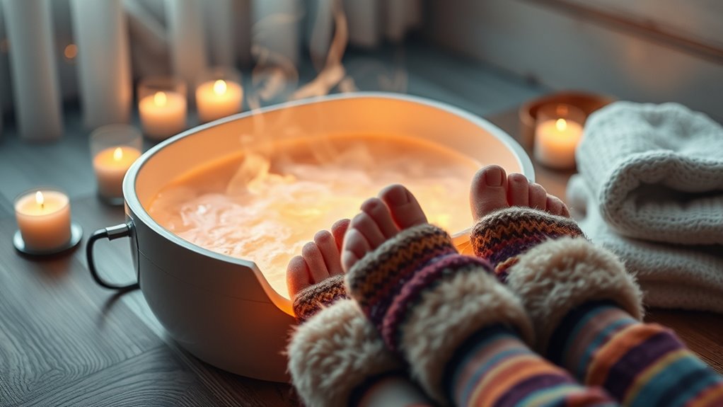 Absolutely, you can add essential oils or bath salts to your foot spa. I once added lavender oil for relaxation, and it transformed my experience into a soothing oasis. Just remember, use only a few drops of essential oils, and choose salts that dissolve well to avoid clogging the unit. Always check your foot spa’s instructions to guarantee compatibility, and enjoy your calming, aromatic soak!