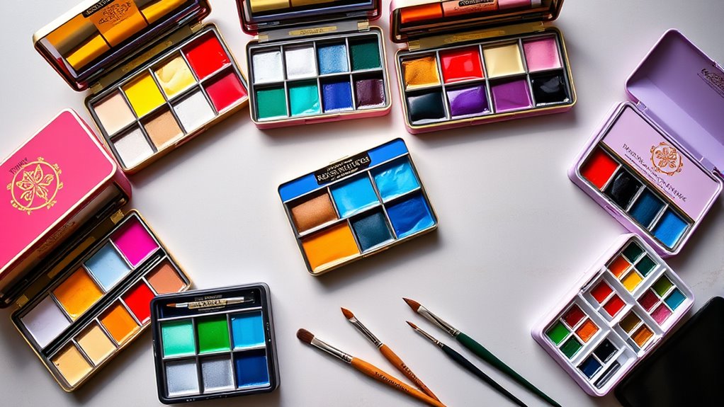 To enhance my experience with high-end watercolor sets, I add quality brushes, a palette with mixing wells, and waterproof paper. I also use masking tape to protect edges and a water container for easy cleaning. These accessories help me achieve finer details and smoother blends, making my artwork more polished. Investing in these tools truly elevates my watercolor skills and lets me get the most out of my premium set.