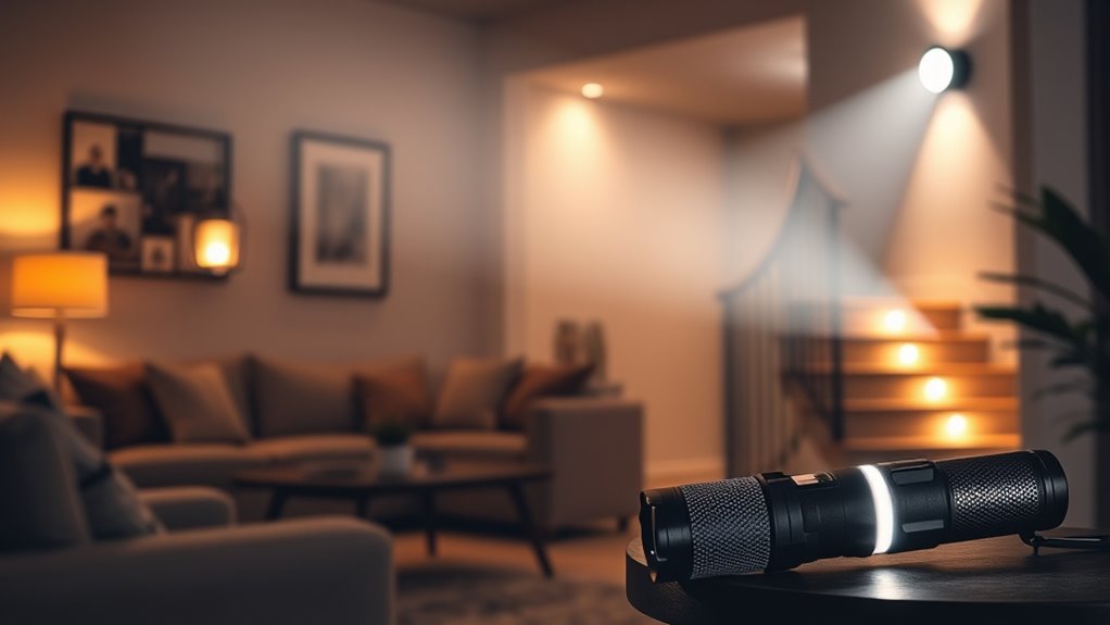 When power goes out, I rely on the best emergency lighting solutions that are easy to install and dependable. Options like adjustable LED wall lights, rechargeable flashlights, and multi-use units provide up to 90 minutes of backup power and focus light exactly where I need it. Many are UL-certified and simple to set up, ensuring safety and convenience. If you’re interested in top-rated options, there’s plenty more to discover to keep your home safe during outages.