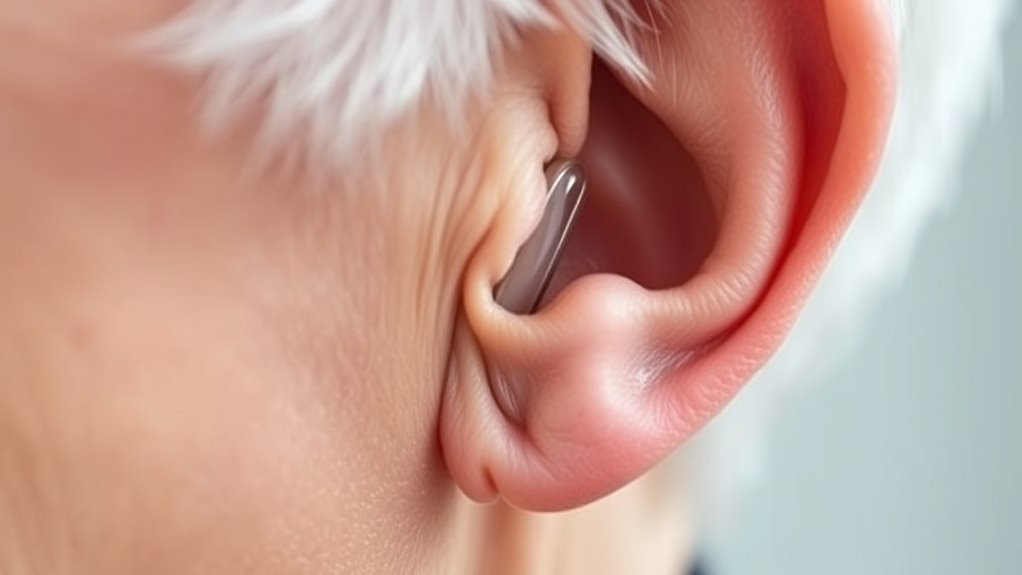Hearing loss severity plays a crucial role in selecting the right invisible hearing aids for seniors. For mild to moderate loss, discreet digital models with noise reduction work well, providing clear sound without drawing attention. However, if the loss is severe or profound, more powerful, larger devices may be necessary, which might compromise invisibility but guarantee adequate amplification. The level of hearing loss determines how much amplification is needed, guiding the choice of suitable aids. An accurate assessment by an audiologist is essential to match the technology to the specific impairment. Additionally, if hearing loss progresses over time, adjustable or upgradeable invisible aids can accommodate future needs, offering flexibility and continued comfort without frequent replacements.