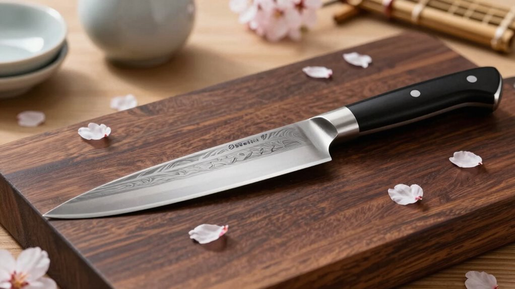 Selecting a Japanese knife with the right handle is essential for comfortable and safe food prep. An ergonomic handle should fit naturally in your hand, reducing fatigue during long sessions. Materials like rosewood, pakkawood, or stabilized wood not only feel comfortable but also provide a secure grip, even when wet. The shape of the handle, whether octagonal or oval, impacts control and maneuverability, making precise cuts easier. Proper balance between the handle and blade minimizes wrist strain, improving overall comfort. Additionally, textured or contoured handles enhance slip resistance, boosting safety and precision. When choosing a knife, pay close attention to how the handle feels in your grip and how it supports your cutting style. The right handle ensures your knife is both efficient and comfortable for everyday use.