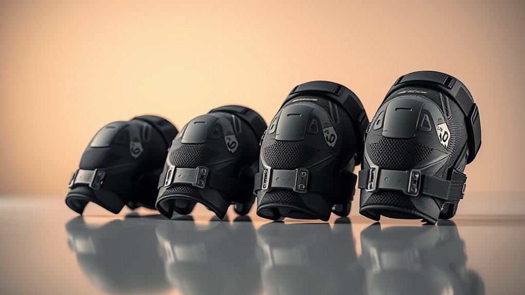 Think of hinge designs like a tailor-made suit—they’re crafted for specific needs. For sports, I recommend braces with flexible, lightweight hinges that allow quick movement and stability. For daily use, sturdier, more supportive hinges provide stability without sacrificing comfort. Choosing the right hinge design depends on your activity level, ensuring your knee gets the support it needs without feeling like a cage. Always match your brace to your lifestyle for the best results.