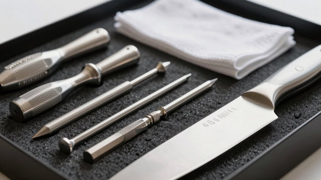When you’re choosing a knife maintenance kit, remember to weigh the worry-free options that work wonders and keep your blades brilliant. With the right kit, you’ll enjoy effortless upkeep, ensuring your knives remain sharp, shining, and ready for action. So, select smart, stay sharp, and let your knives gleam like new — because proper protection and precise polishing make all the difference in keeping your cutting tools cutting flawlessly.