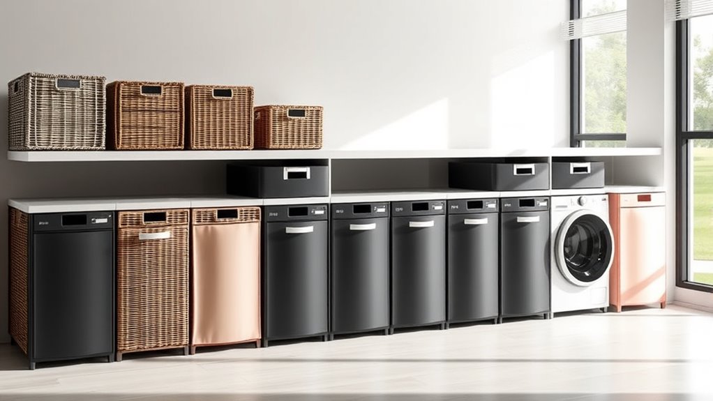 - Opt for stylish designs like synthetic rattan or sleek fabric options to enhance your laundry space’s decor.