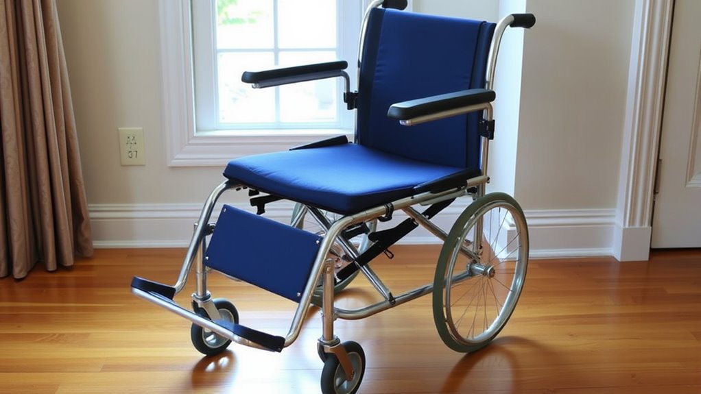 Imagine gliding smoothly, but suddenly hearing a squeak or feeling resistance—that’s your cue for maintenance. I check the tires regularly for proper inflation, clean the wheels to prevent debris buildup, and inspect the brakes for responsiveness. Lubricating moving parts keeps everything functioning quietly. By staying attentive and performing these simple tasks, I make certain my lightweight transport chair remains comfortable, reliable, and ready whenever I need it—no surprises, just smooth rides.