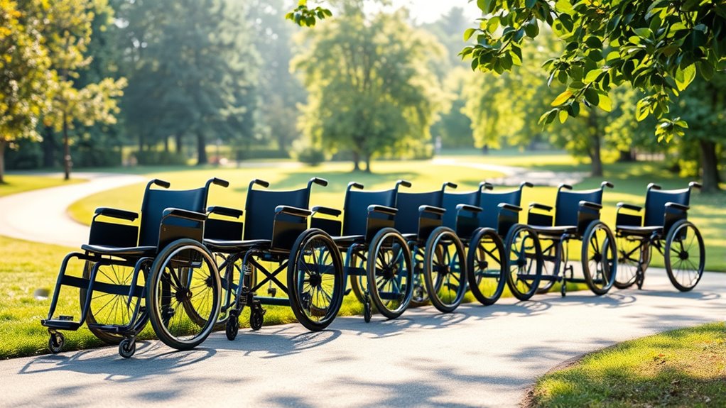 Finding a lightweight wheelchair with solid storage and transport options can make a world of difference for seniors. I’ve found that models folding down to just 12.5 inches wide are perfect for fitting into tight spaces like closets or car trunks. Quick-fold mechanisms that collapse in seconds are a game-changer for hassle-free transport, whether I’m heading out for a day trip or running errands. I appreciate wheelchairs with removable or swing-away footrests and adjustable armrests, as they make loading and unloading a breeze. Features like telescopic handles and built-in straps help with lifting and carrying, too. With sturdy yet lightweight aluminum frames, I can enjoy stability without the bulk, making outings much easier.