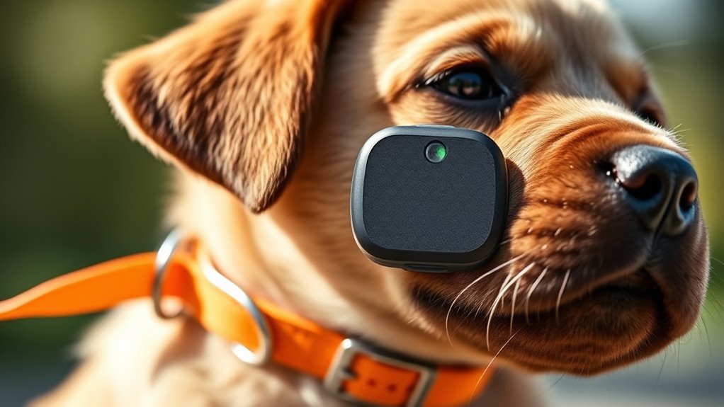 Choosing the right LTE GPS pet tracker means paying close attention to its size and compatibility to guarantee it fits comfortably on your pet. Make sure the device is collar-compatible and suits your pet’s neck size, avoiding gear that’s too bulky or lightweight. Check the dimensions and weight to ensure it won’t cause discomfort or interfere with daily activities. Compatibility with your smartphone’s operating system—whether iOS or Android—is essential for seamless app use. Also, consider your pet’s breed and size; a bulky tracker might be unsuitable for small dogs, while a tiny one might not be durable enough for larger breeds. Clear, accessible app alerts and notifications on your device are critical for effective monitoring, so verify the tracker’s compatibility and alert features align with your preferences.