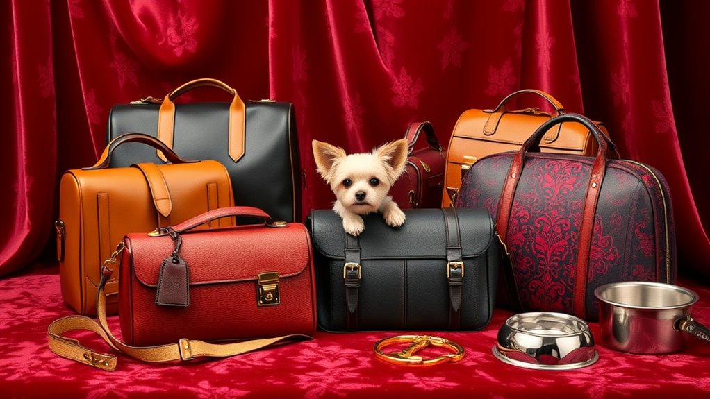When it comes to finding the best luxury dog carriers for travel, I’ve got you covered! These stylish carriers combine comfort and safety, featuring breathable mesh panels, durable materials, and cozy interiors. Brands like Katziela and Sherpa offer airline-approved options that fit under cabin seats, making travel a breeze. Plus, with added features like expandable compartments and external pockets, your furry friend will travel in style. Stick around to discover my top picks for luxurious pet carriers!