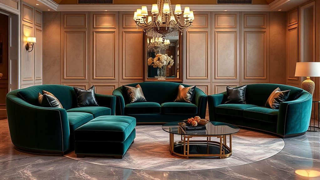 The latest trends in luxury sofa design focus on bold shapes, plush textures, and versatile materials. I love how designers are mixing sleek modern lines with cozy, inviting fabrics like velvet and boucle. Statement pieces with unique details, like tufted cushions or metallic accents, are also in vogue. Overall, I see a shift towards personalized, comfortable elegance that seamlessly blends style and function, making your space feel both luxurious and welcoming.