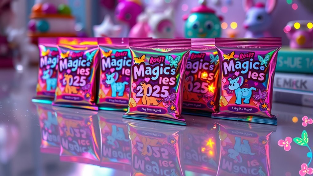The magical effects in a Magic Mixies refill pack truly elevate the play experience, turning each reveal into a mesmerizing spectacle. The special ingredients create bubbling, fizzing, and shimmering visuals that captivate kids and add excitement. Unique effects like color-changing elements and glow-in-the-dark features surprise children and keep play fresh. Some refills activate specific spells or reveal hidden surprises, making each session unpredictable and engaging. The combination of misting and spell components results in sensory effects like sparkling or bubbling reveals, heightening the sense of wonder. Properly formulated refills guarantee consistent magical effects, so the magic feels authentic every time. These effects not only enhance the visual appeal but also deepen the immersive experience, making every play session truly magical.