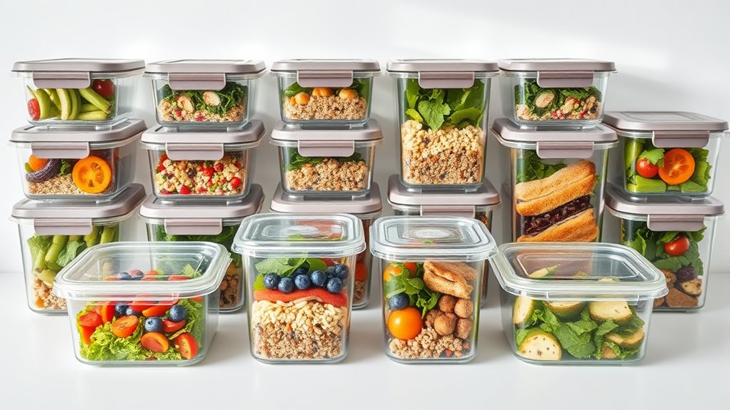Imagine opening your fridge to a row of sleek glass containers, each one holding vibrant salads, hearty grains, or juicy fruits, all kept fresh and inviting. Choosing the right meal prep containers means your food stays as appealing as the day you packed it. With options that combine style, durability, and practicality, you’ll enjoy every meal more—knowing your food looks tempting and tastes just as good. Ready to elevate your meal game?
