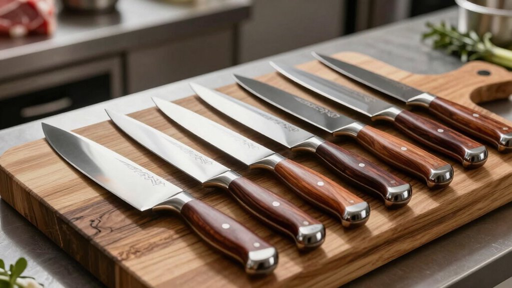 - Handles are ergonomic, secure, and made from durable materials like pakkawood and rosewood for comfort during extended use.