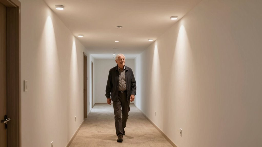 Think of motion-activated lights as trusted guardians watching over us in the dark. Just like loyal sentinels, they keep seniors safe and confident, guiding them through every step with gentle illumination. Choosing the right lights is like finding the perfect allies for a peaceful night’s sleep. When you pick wisely, you guarantee comfort and security, turning every dark corner into a place of reassurance—because everyone deserves to feel safe and cared for.